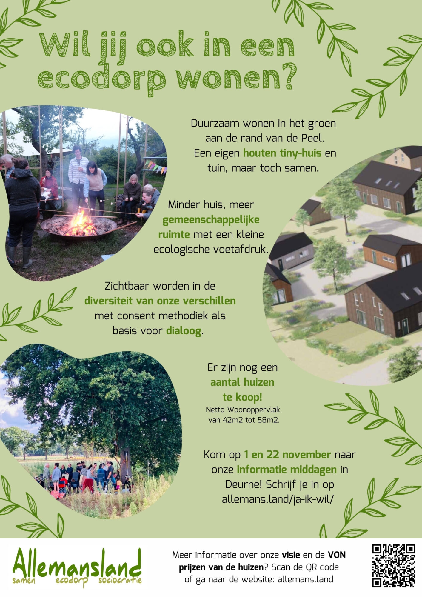 Wil jij wonen in het groen met veel buitenruimte om te genieten? In je eigen huis, maar toch samen? In Ecodorp Allemansland zijn nog 4 woningen beschikbaar.